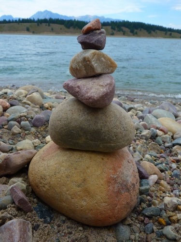 Gefährt noch einen der Restplätze (First Come, First Serve) für das Wochenende ergattern konnten. Danach ging es hinunter zum Jakson Lake, dessen Strand das genaue Gegenteil des Bear-Lake war — überaus steinig. Aber damit ließen sich dann wiederum sehr nette Figuren bauen – die Farbe der Steine tat sein übriges dazu. Die einen bauten hoch, die anderen mit unterschiedlichen Farben und andere