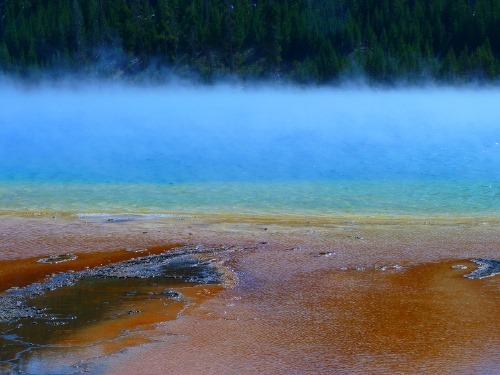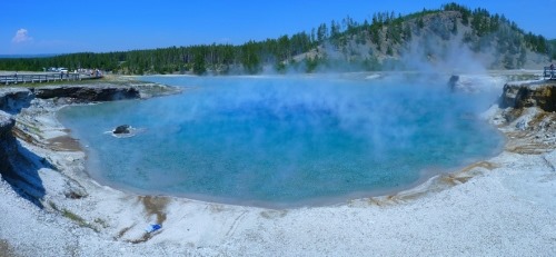 noch mitgenommen haben – und der Dampf über einem weiteren tiefblauen Pool direkt neben dem auf der linken Seite.