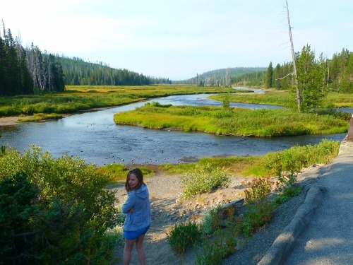 Schon auf der Fahrt zum Park wurde die Landschaft immer schöner und der Lewis River schlängelte sich gemächlich durch die Hochebene auf etwa 2000m. Der Verkehr war vernachlässigbar und der Parkplatz am Old Faithful noch total leer, was kein Wunder war bei unserem frühen Start.