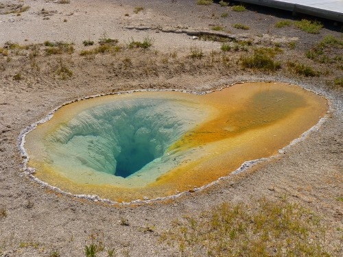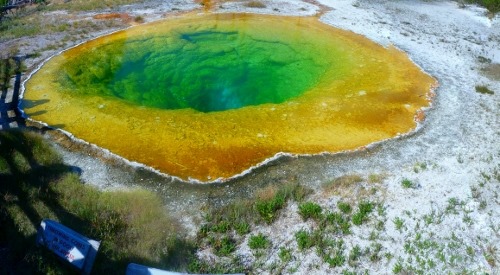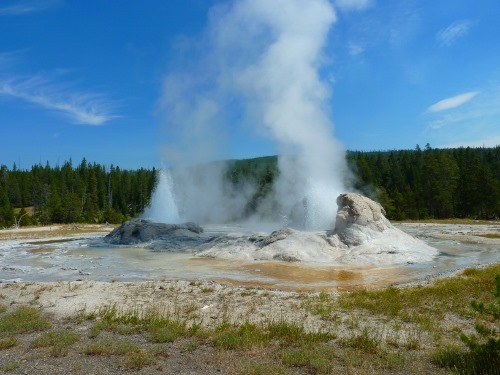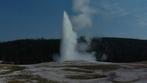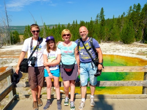 Old Faithful – wenige Minuten nach unserer Ankunft ausbrach – eine gigantische Wasserfontäne, die mit viel Dampf nach oben geworfen wurde. Im Anschluss schauten wir uns unzählige Pools und Fontänen an, die in verschiedensten Farben schillern. Die blauen Pools sind übrigens die heißesten, während die gelben Stellen die Haut auch leicht verkochen.
