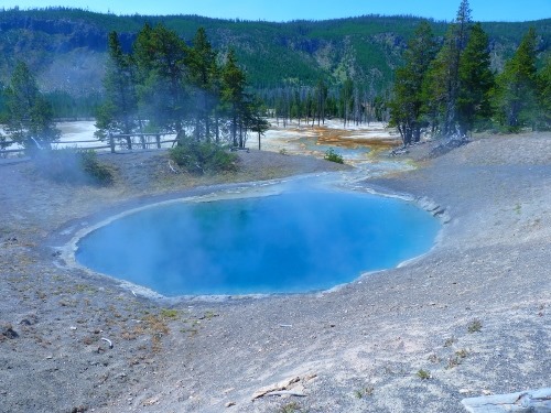 Das heiße Wasser fliesst übrigens direkt in den Madison River,