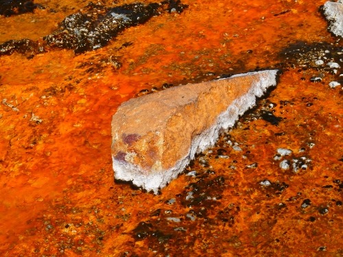 , dann mit Steinen mitten in der Bakterienmatte, die einen tiefblau, andere wieder mit Gelb versetzt.