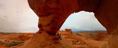 anzusteuern – und ebenso den Duplicate Arch, bei dem wir eine Felsenhöhle bestiegen, die uns ein wenig von den Regentropfen beschützte. Wie schon im Yellowstone Park —