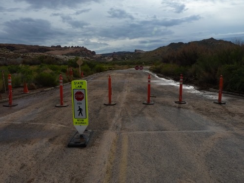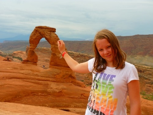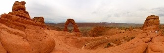Weiter ging es zum heutigen absoluten Highlight: dem Delicate Arch. Auch der Ausblickspunkt für diese Felsenbrücke wäre mit dem Auto anzufahren gewesen, wenn nicht die Strasse von den Regenfällen in der Nacht überflutet gewesen wäre. Vom Wolfspit aus starteten