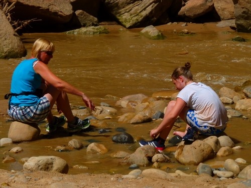 Am Ausgang angekommen, mussten dann erst einmal die Schuhe und Strümpfe von Sand befreit und das Wasser ausgelehrt werden. Wir hoffen, dass wir sie in Las Vegas wieder trocken bekommen.