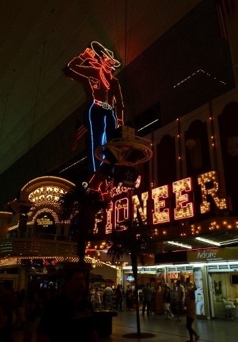 Mit dem Deuce bewegten wir uns dann am Abend vorwärts – der Camper blieb auf dem Campingplatz am Circus Circus. Mit $8 für 24 Stunden eine gute Alternative den Strip von vorne bis hinten durchzukämmen. Unser erster Stop – natürlich am Bellagio, um wieder die Fontainenspiele anzuschauen. An denen können wir uns einfach nicht satt sehen. Luxor war unser nächster Stop am südlichen Ende des Strips, wo Marius noch ein paar Aufnahmen machte, bevor wir uns dann ans nördliche Ende aufmachten und die Freemont Street in Downtown besuchten. Hier wo alles begonnen hatte, ist jetzt die komplette Strasse überdacht und an jeder Ecke gibt es Live-Musik. Anscheinend waren wir allerdings schon ein wenig zu spät unterwegs, da auch jede Menge angetrunkener Leute hier zu sehen waren, was unser Sightseeing doch um einiges verkürzte.