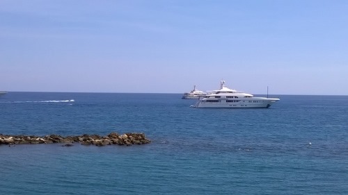 Erstes Highlight war Antibes, ein Mekka, wenn man super tolle Jachten begutachten will – natürlich mit Crew und Bentley (davor) inklusive. Marius hat sich dabei gleich sein Geburtstagsgeschenk ausgesucht – nur die Radarkugeln des Campers hätte er doch lieber in schwarz gehabt. Zudem fehlte ihm doch der Hubschrauberlandeplatz auf der Jacht ![]()