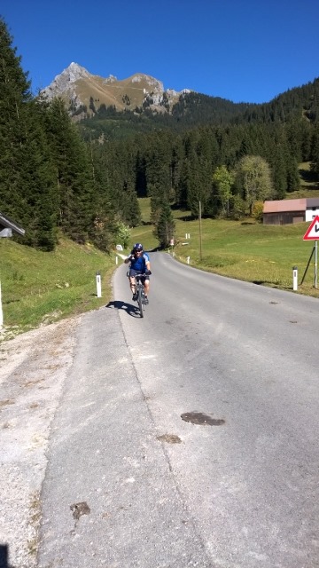 Die Höhenwege nach Zöblein und Schattwald brachten uns nach einem kleinen Mittagsstop in Grän, zwar dann mit Anstiegen bis zu 17% gehörig ins Schwitzen, die Aussicht lies uns die Mühen doch immer schnell vergessen.