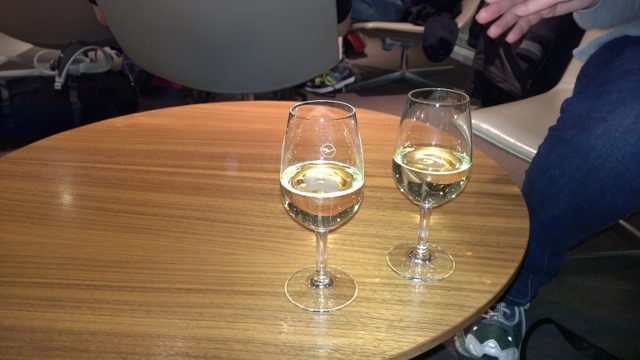 Am späten Nachmittag fahren wir dann mit dem Auto ins Office und von Lohof weiter mit der S-Bahn zum Flughafen. Ich denke wir waren mit die Ersten, die für die diesen Flug die Koffer abgegeben haben – aber das gibt uns die Zeit in der Lounge noch einen kleinen Sekt zu genießen.