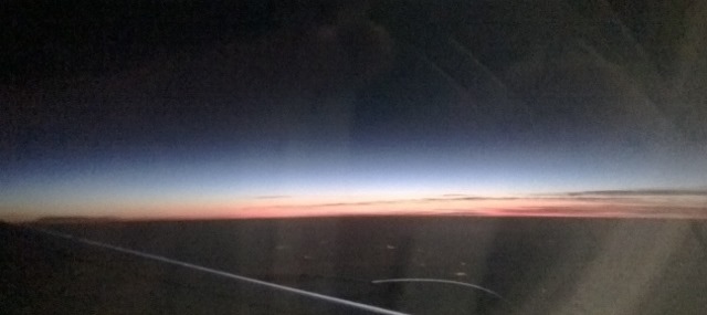 Im Verlauf des Flugs können wir einen immer wieder kaum zu beschreibenden Sonnenaufgang aus unserem kleinen Fenster heraus beobachten.