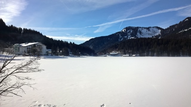 die Frontscheibe, schon bald aber glasklar mit einem schönen Blick über den immer noch gefrorenen und verschneiten Spitzingsee. Auf gings zu unserem heutigen Ziel: das Rotwandhaus.