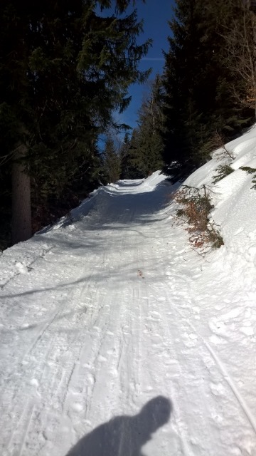 Der Weg hinauf war noch immer verschneit, aber wunderbar auch ohne Schneeschuhe zu gehen. Viele Skitourengeher und Rodler nutzten die Strecke mit uns, sodass zwischenzeitlich einiges los war.