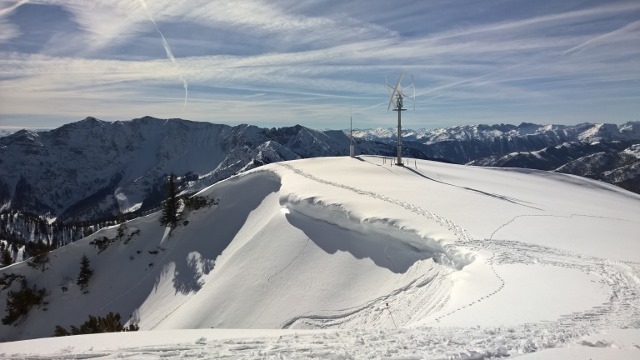Vor der Rotwandhütte hatte sich zudem eine riesige Schneewächte angesammelt, die aussah als könnte sie jeden Moment abbrechen.