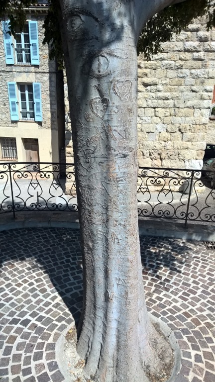 Hinter dem Hafen befindet sich Antibes Altstadt eingebettet in eine Stadtmauer, die wir durch ein kleines Tor betraten. An Radfahren ist in dem kleinen Örtchen nicht wirklich zu denken. So schoben wir unsere Bikes zum Picasso Museum und tauchten in die engen Gässchen ein. Dabei fanden wir auch diesen Baum, der über und über von Herzen verziert ist. Wenn man genau hinschaut, kann man das neue Herz erkennen ![]()