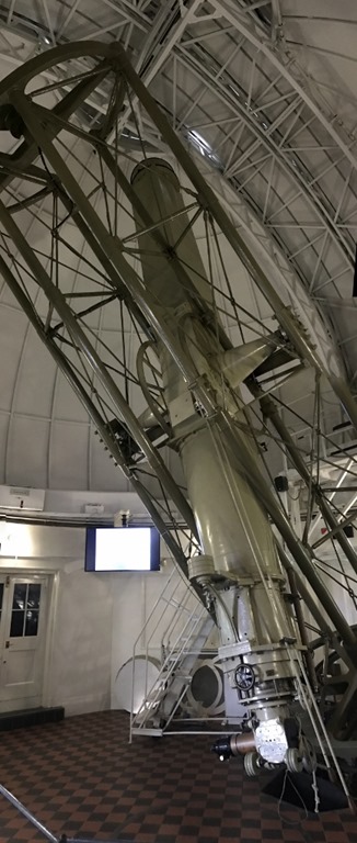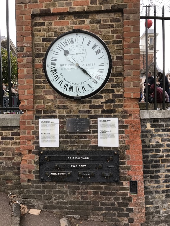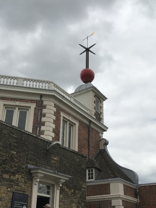 Greenwich hat natürlich noch immer ein Observatorium mit einem riesigen Teleskop – eine wunderbare Aussicht über London und einen roten Ball auf der Spitze des Gebäudes. Der rote Ball zeige früher, wann die Fischer heim oder raus fahren sollten, in dem er entweder oben an der Spitze oder wie in dem Bild unten war.