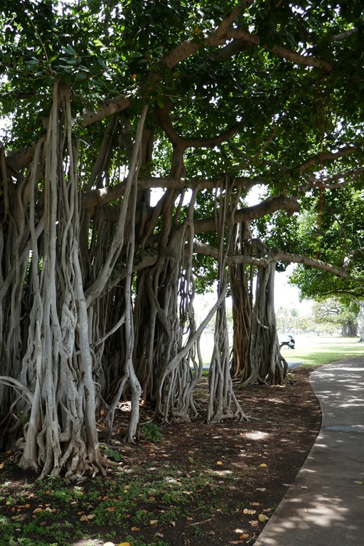 Die Bewölkung hatte den Vorteil, dass es für eine Stadtbesichtigung nicht zu heiß war – daher ging es jetzt nach Westen nach Downtown parallel am Strand und zahlreichen sagenhaften Bäumen entlang, die ihre Äste nach unten wachsen lassen.