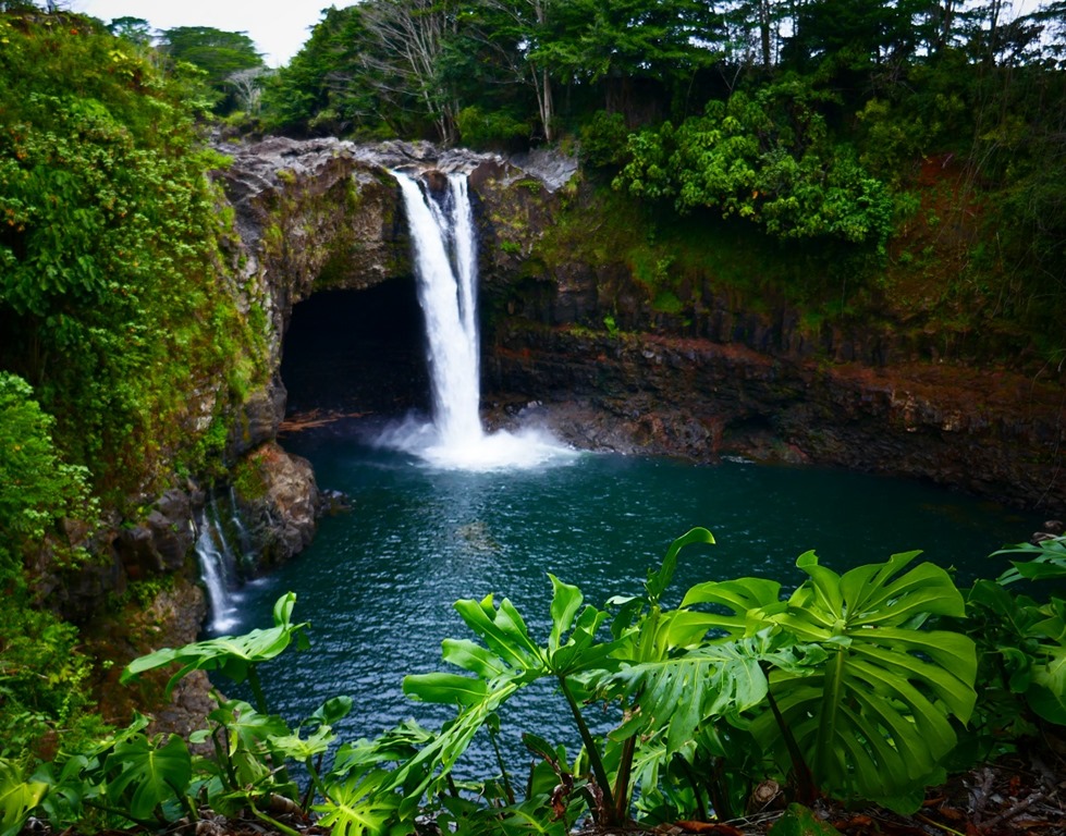 Island und nach anfänglichem Sonnenschein, war der Himmel dann schnell bedeckt. Nach einem kurzen Checkin im Hotel besuchten wir den ersten Wasserfall (Akaka Wasserfälle).
