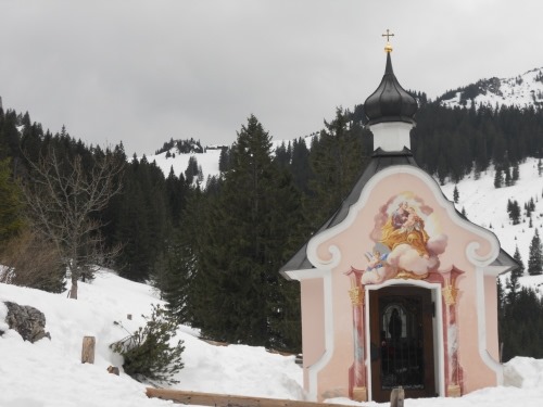 ), geht es an einer kleinen Kapelle vorbei stetig steil bergauf die Hütte immer fest im Blick (wenn man nicht damit beschäftigt war, nicht auszurutschen). Vom Pürschling Haus selber hat man dann einen schönen Blick über die Ammergauer Alpen bis hinunter zum Schloss Linderhof. Da unser Fotograf aber am Ziel wohl keine Lust mehr hatte, gibt es heute leider kein Bild vom Pürschling-Haus; hier bekommt Ihr einen Eindruck, wie es ausgesehen hat.