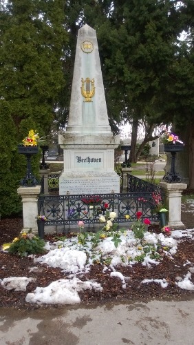 Ebenso kann man auf dem Friedhof auch verfolgen, wie sich der Stil der Gräber bei den Künstlern über die Jahre hinweg verändert hat. Während wir den typischen Grabstein für Beethoven, Brahms und die verschiedenen Strauss sehen konnten, sieht das Grab von Falco, der 1998 beerdigt wurde, schon ein wenig moderner aus – bei ihm wird nicht mehr mit Steinbildern gearbeitet,