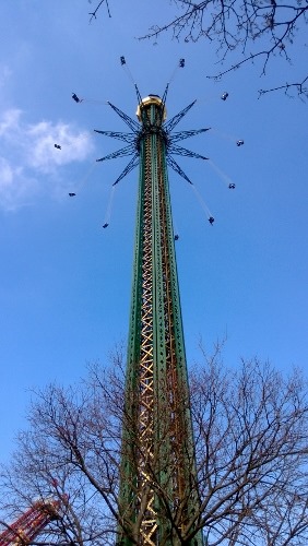 Weiter ging es durch den Prater – nicht ohne das höchste Kettenkarussell von unten zu betrachten (117m hoch). Marius und ich lieferten uns dann noch ein kurzes Kart Rennen, das er