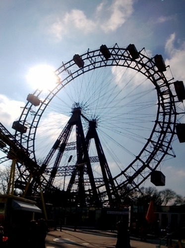 einige Schritte weiter waren wir schon am Wiener Riesenrad. Da Steffi schon negative Erfahrungen mit dem Riesenrad gemacht hatte, überließ sie die Fahrt uns allein