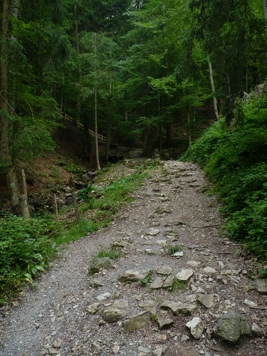 Auf dem Weg nach unten, bei dem 600m auf etwa 4km vernichtet werden mussten, kam uns tatsächlich schiebend ein Mountainbiker in Flip Flops – er hatte wohl unten das Schild übersehen, dass die Hütte doch schon zu hatte.