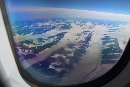 Über Nürnberg und Norwegen flogen wir nördlich von Island über Grönland, welches uns heute ein traumhaftes Bild bot. Wir konnten uns kaum satt sehen an den langgezogenen Gletschern, die wir heute ohne störenden Wolken genießen konnten. Jetzt machte sich der Polfilter von Marius auch bezahlt, der keine störenden Reflektionen am Fenster hinterließ.