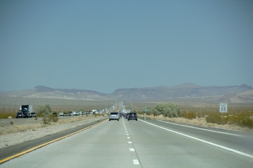 Kurz vorbei an Area 51 und vielen geplatzten Reifenteilen am Rand, ging es durch die glühende Hitze Richtung Nordosten – und um 14:30 Uhr