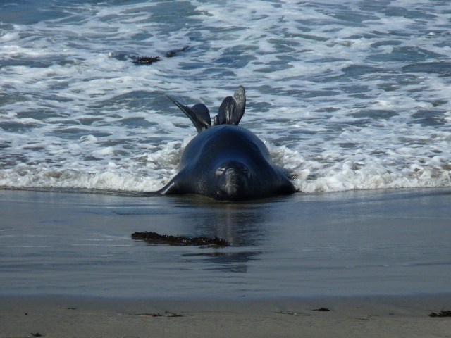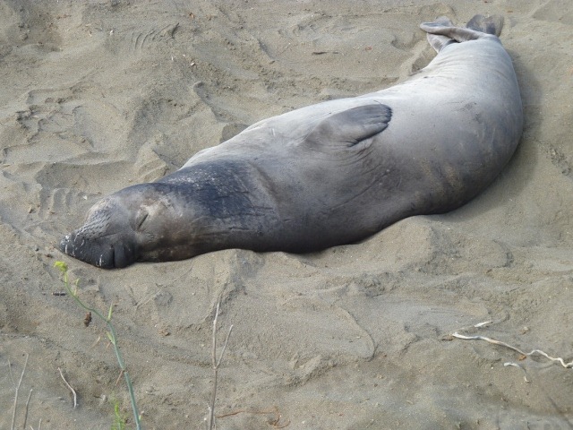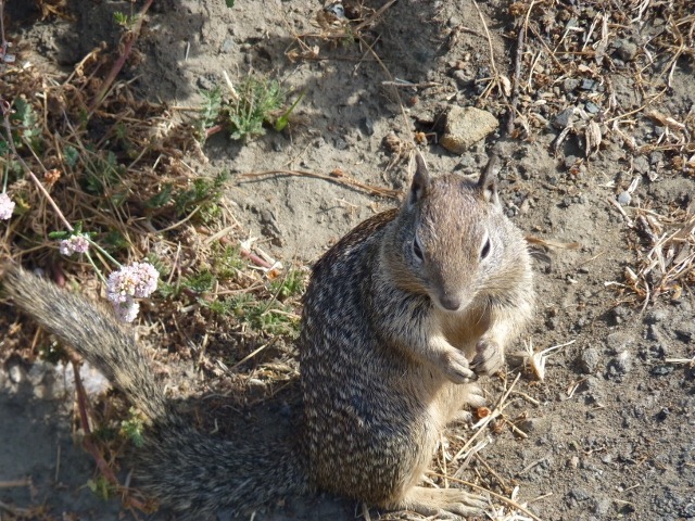 P1000793 (640x480)Etwa eine Stunde nördlich von Morro Bay konnten wir Seelöwen und Squirrels beobachten, die sich auf einer der wenigenP1000798 (640x480) Strände, die selbst heute Sonne abbekamen, breit gemacht haben. Es ist schon putzig, wenn sie sich die Seelöwen mit Sand bewerfen oder anfagen zu klatschen.