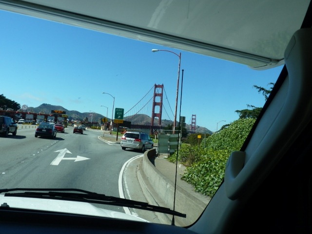 P1000882 (640x480)Danach ging es weiter nach Norden nach San Francisco. Einen ersten Eindruck bekamen wir allein durch die Fahrt durch die Stadt – unzählige Ampeln und auf undP1000886 (640x480) ab über 47 Hügel. Bis zum Ziel: der Golden Gate Bridge. Ein wenig nördlich war dann unser Campingplatz und hier erlebten wir auch die relaxte Art der Leute hier. Erst mal den RV parken, einkaufen, dann die Formalitäten erledigen.