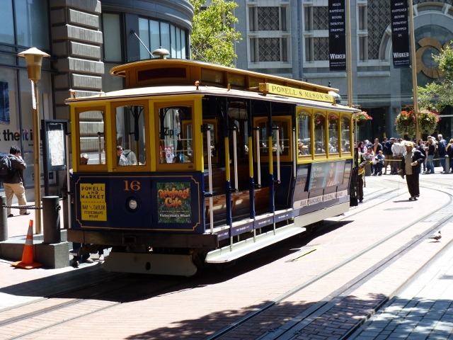 P1000989 (640x480)Auf gings dann die Berge hoch fast auf den Russian Hill, um ein Cable Car zu ergattern, die aber leider alle voll waren. Daher ging es zurück zum Union Square, wo es hieß sich erst mal zu gedulden und anzustellen. Aber es hatte sich gelohnt – mit dem Cable Car ging es quer durch die Stadt zum P1010032 (640x480)Fishermen’s Wharf – mit vielen Läden, einer komplett anderen Stimmung als in China Town und vielen Akrobaten, Musikern etc., die auf der Strasse ihre Leistungen boten. Auf dem Weg zurück an der Pier entlang machten wir noch einen kleinen Abstecher zum Cuit Tower, der eine fantastische Sicht auf ganz SFO zuließ. Allerdings mussten erst um die 430 Stufen bezwungen werden, was sowohl Elena als auch Marius mit Bravour meisterten.