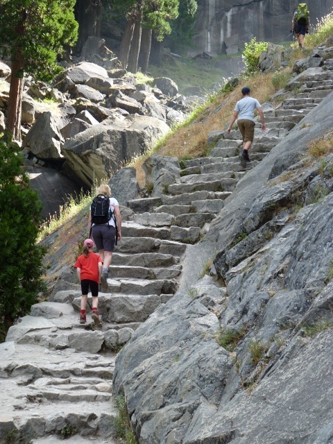 P1010094 (480x640)Die ersten 3km wurden noch mit dem Parkshuttle zurückgelegt, dann ging es zu Fuß auf den Misttrail, um zwei Wasserfälle anzuschauen – Vernal und  Nevada Falls. Ich glaube die Bilder sprechen für sich, wirklich genial. Die Wahl fiel auf diese beiden, da die beiden noch das meisste Wasser im August führen. Andere Wasserfälle sind schon trocken um diese Jahreszeit.