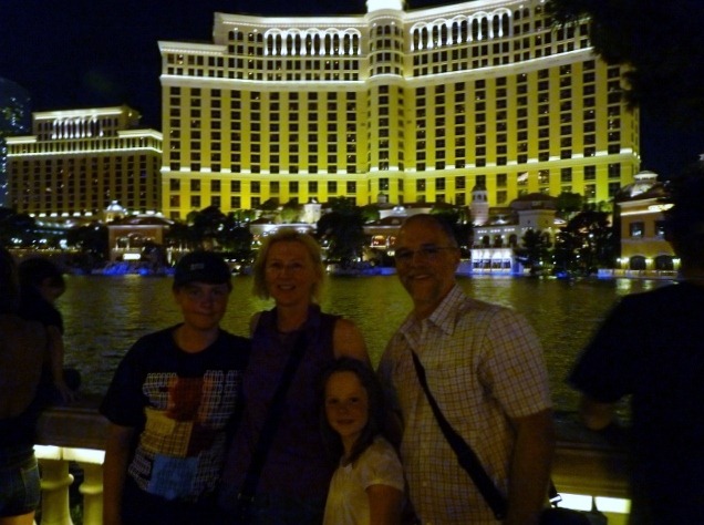 P1010549Nach dem Dunkelwerden, ging es nochmal auf den Strip – Luxor und Excalibur. Den krönenden Abschluss bildete das Belaggio mit seinen Wasserfontainen, die wir uns drei Mal anschauten und eigentlich nicht genug davon bekommen konnten.