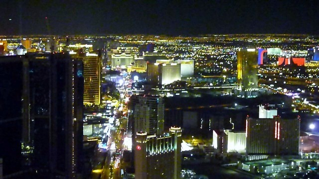 P1010637 (640x360)Zum Abschluss von Vegas ging es auf den höchsten Turm der Stadt (fast 300m hoch) – den Stratosphere, von dem wir eine gigantische Sicht auf die ganze Stadt und das Umland hatten. Die Fahrgeschäfte sind auch nicht von schlechten Eltern, mit dem Highlight: Bungee Jumping vom Turm…