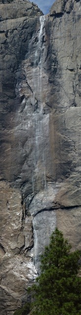 Yosemite Falls Panorama (165x640)Im Tal wieder angekommen, ging es nach einem Eis gestärkt noch zu den Yosemity Falls, die allerdings schon fast ausgetrocknet waren.