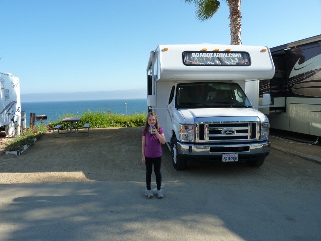 Nach 3.5 Stunden landen wir in Morro Bay, ein kleiner Ort, der durch einen gewaltigen Felsen vor der Küste bestimmt wird. Am 3. Campground fanden wir einen Platz für uns, der genau die Größe von unserem Camper hatte (30ft), wodurch die Einparkkünste zum ersten Mal auf die Probe gestellt wurden – aber mit Steffi’s Hilfe kein Problem. Sogar die Nachbarn gaben Applaus